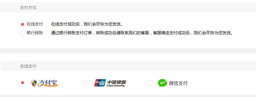 (2)用戶登錄CD傳動商城后選定所需產(chǎn)品,并點擊付款后可以選擇在線支付或銀行轉(zhuǎn)賬。