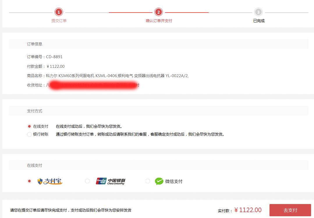 付款;在提交訂單確認(rèn)信息后選擇平臺(tái)支付方式進(jìn)行支付,完成購物流程。